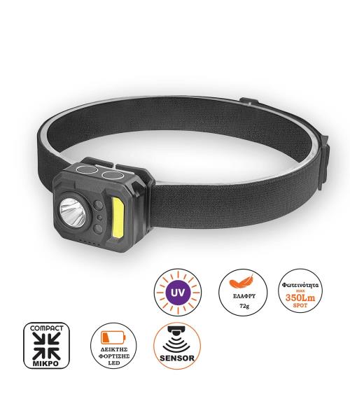 Compact επαναφορτιζόμενος φακός ΑLPIN με 1 CREE XPG3 + UV + RED COB Μικρό και πολύ ελαφρύ άλλα με μεγαλύτερή επιφάνειά να αναλογεί στο κόκκινό COB και το UV σε σχέση με το μικροί μέγεθός του Μνημονεύει τη λειτουργία και επιστρέφει στην ιδιά μετρά την πάροδο 3 δευτ. COB κόκκινο και UV χωρίς να χρειαστεί να περάσει από το άσπρο ΑΙΣΘΗΤΗΡΑΣ ΚΙΝΗΣΗΣ ΜΕ ΕΠΙΛΟΓΗ ΜΝΗΜΗΣ: Πλήρως Παραμετροποίησιμος Σένσορας Ο σένσορας λειτουργεί σε όποια σκάλα θέλουμε εμείς. Νέας σχεδίασης μηχανισμός στο κάτοπτρο για ευρυγώνιο σκόπευση. Το φως πέφτει ομοιόμορφα σε όλα τα επίπεδα. Ελεύθερη προσαρμογή κλήσης Έλεγχος δύναμης μπαταρίας κατά την λειτουργία με Ένδειξη 4 σημείων (Μπλε LED ON Ενδεικτική 1 σκάλα Μπλε LED ON Ενδεικτική 5 σκάλα) Κύκλωμα αποτρέπει στην μπαταρία την υπερφόρτιση και αποφόρτιση της 3hrs Χρόνος Φόρτισης Απευθείας φόρτιση από Type C USB Ώρες λειτουργίας Ισχυρή σκάλα 4 ώρες - 350Lumens Χαμηλή σκάλα 5 ώρες - 120 Lumens Strobe 4 ώρες - 350Lumens UV COB: 3,5ώρες Red COB: 3,5ώρες 15Lumens Red Flash: 3,5ώρες 15Lumens Μέγεθος 50*41*34mm 70.5gr [με μπαταρίες] Προδιάγραφες: Προστασία από πτώση 1m IP66 Προστασία κατά Σκόνης και η απαραίτητη αδιαβροχοποίηση Αντίθετα με την πλειοψηφία των ατομικών συστημάτων φωτισμού που υποφέρουν από την σταθερή μείωση της φωτεινότητας κατά την διάρκεια της χρήσης, το συγκεκριμένο προϊόν με AC-DC έλεγχο της παροχής επιτυγχάνει την δυνατότητα να διατηρήσει την υψηλή απόδοση φωτισμού του μέχρι την πλήρη εκμετάλλευση του όλου του φορτιού της. (Input Current 5V 0.5A) Μπαταρία: 1 x3.7V 1200mAh Li-ion Rechargeable Battery [περιλαμβάνεται] - Φορτίσεις: 600 κύκλους [Πάει ~ 80% Χωρητικότητα μετά 500 κύκλους] Input: 5V 0,5A Αξεσουάρ: Λουρί κεφαλής & Στήριγμα κεφαλής & TypeC USB [περιλαμβάνονται]