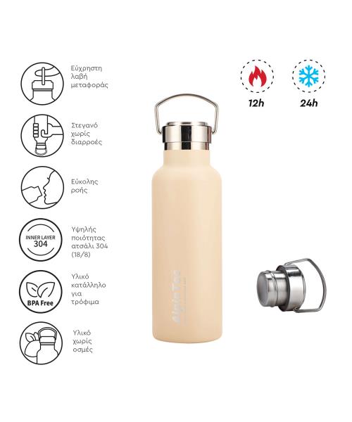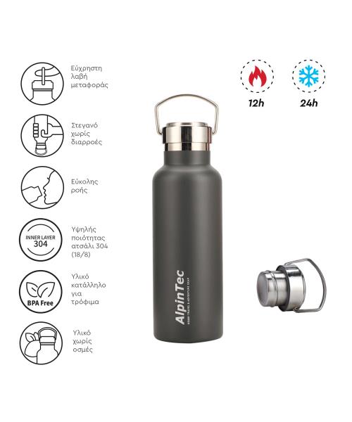 Το Θερμός SOLIST της Alpintec διατηρεί τα ποτά σας κρύα για 24 ώρες και ζεστά για 12. Χωρίς υγρασία και με τέλειο μέγεθος για την άνετη ενυδάτωση σας. Ποιότητα Το Alpintec είναι ένα Ελληνικό brand που κοιτάει πάντα την ποιότητα στα προϊόντα που εμπορεύεται. Στον τομέα των παγουριών ξεκίνησε με τα πλαστικά παγούρια που έφερε την επανάσταση στην κατηγορία αυτή με αποτέλεσμα να αγαπηθούν και να συνεχίζουν να τα προτιμούν όσοι τα αγόρασαν στην Ελλάδα όσο και στο εξωτερικό. Χρήση Μπορεί να σας ακολουθήσει στο γραφείο, στο γυμναστήριο, στην παραλία, στις καθημερινές σας μετακινήσεις, κρατώντας το ρόφημα σας ζεστό ή κρύο για πολλές ώρες. Χαρακτηριστικά: Θερμός διπλών τοιχωμάτων από ανοξείδωτο ατσάλι 18/8 Διατηρεί τα υγρά κρύα έως 24 ώρες και ζεστά έως 12 ώρες 18/8 ανοξείδωτο ατσάλι κατάλληλο για τρόφιμα 100% χωρίς BPA, χωρίς φθαλικές ενώσεις, χωρίς τοξίνες, χωρίς αλουμίνιο Το καπάκι του θερμούς είναι εξολοκλήρου από ανοξείδωτο ατσάλι και με μεγάλος βάθος ώστε να διατηρεί την θερμοκρασία περισσότερο Το καπάκι έχει ειδική λαβή που μπορεί να ανοίξει και να κλείσει στις 180 μοίρες. Εύκολη μεταφορά και κρέμασμα. Δεν διατηρεί ούτε προσδίδει καμία γεύση στα ροφήματα σας Πλάτος στομίου 3,5 cm για άνετη πόση και γέμισμα πάγου Συνιστάται πλύσιμο στο χέρι Χωρητικότητα: 550ml Το χρώμα τοποθετείται μέσω της αποτελεσματικότερης τεχνικής supper powder coating, η οποία προσφέρει ένα σαγρέ αποτέλεσμα (δεν γλιστράει) και μεγάλη αντοχή στην μακροχρόνια χρήση. Με πιστοποιητικά ποιότητας FDA & SGS Διαστάσεις: Διάμετρος: 7 cm Στόμιο: o 4,5 cm Ύψος: 22,5 cm Βάρος: 310 gr
